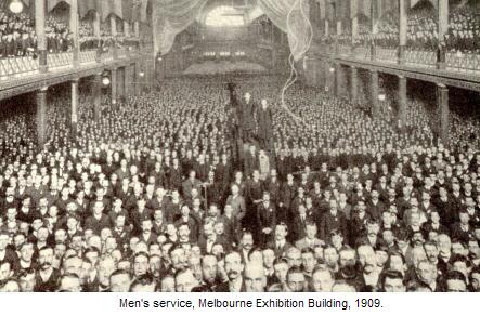 It was in April of 1902 that R.A. Torrey, the well known Bible teacher and successor to D.L. Moody in Chicago, held his great Melbourne Mission. The churches of Melbourne had been a long time in preparing for the meetings. Their organisation was so strong and their preparation so thorough that every house in Melbourne had been visited twice. The city was divided into fifty sections, each division having its own meeting place set up